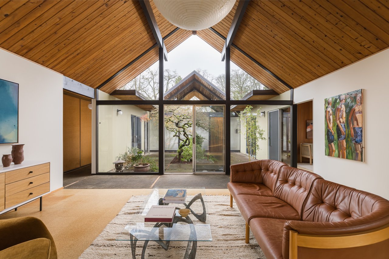 Built in 1939 and designed by John Yeon, the founder of the Northwest Regional Style of Modernism, this home achieves a perfect synthesis between structure and landscape. Originally designed for photographer Victor Jorgensen, the home was purchased by Yeon himself shortly after, and he lived there for 49 years. This is one of the most impeccably preserved examples of Yeon's work and includes some of his innovative concepts, the louvered window ventilation system, a dining table that slides into the kitchen with a sliding partition that conceals, built-in couch, desk, bookcases. Unique features include the covered hip roof walkway that leads to the home, hemlock paneling on the walls and ceiling in the living room, a wall of windows connecting the interior with the surrounding forested landscape, custom light fixtures designed by Yeon, and custom colors on the interior and exterior. The Jorgensen house blends seamlessly into its 1.55 acre lot that is full of beautiful mature, native plantings with walking trails throughout. This is an exceptionally rare opportunity to purchase a historically significant piece of architectural art.